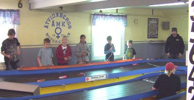 Det var med förväntan vi - Jesper R, Albin, Simon N, Emil, Kalle, Viktor, Alexandra, Johanna, Natta, Jojjo, Max R, Jakob S och chaufförerna Johan, Eva, Marie, Håkan, Bengt – gick uppför trapporna och väl där möttes av andra racers från Åtvidaberg – Boxholm – Karlskoga – Västerås samt Guss och Landrud. Totalt var det 58 startande i klasserna Junior-16D, G12-Saloon och Box 12.